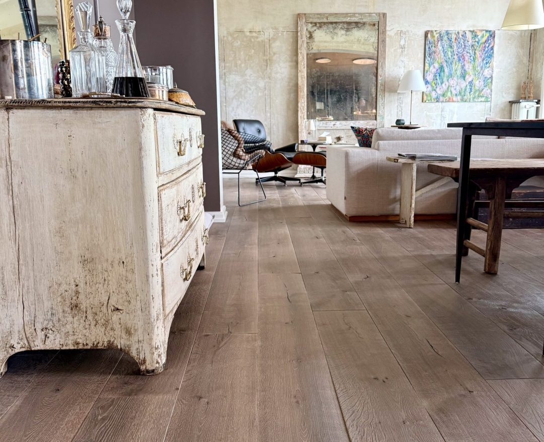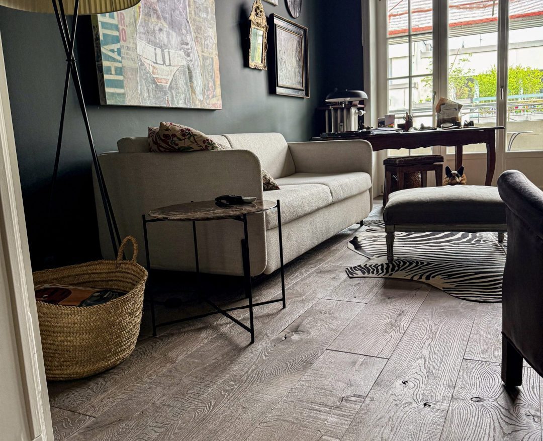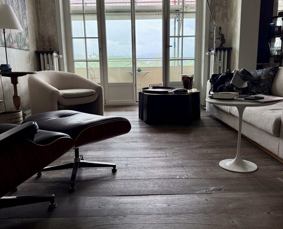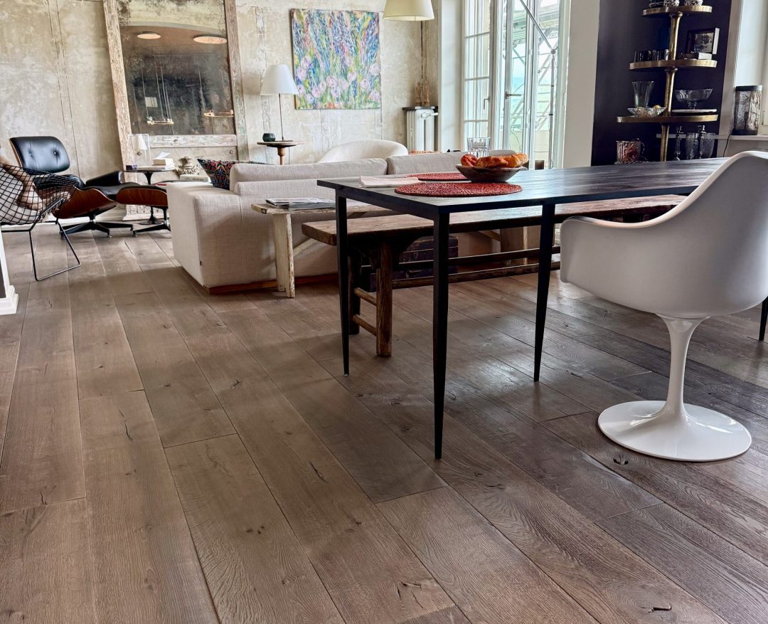 Angenehm gehen wie in der Natur. Die Chalet-Diele ist gekennzeichnet durch die natürlichen Unebenheiten auf der Oberfläche. Ein angenehmer und gesunder Fußschmeichler- Boden für Barfußläufer. Er stimuliert ihre Füße ähnlich wie bei einer Massage oder wie bei barfuß laufen in freier Natur. Ihre Füße und ihr Rücken werden Ihnen dankbar sein. Ein ebenso charakteristisches Merkmal der Chalet-Diele sind auch die nicht gespachtelten, beziehungsweise geschlossenen natürlichen Äste und Risse des Eichenholzes. Der Chalet- Boden geht auch eine überzeugende Symbiose mit top moderner Bauweise und Einrichtung ein. Überzeugen Sie sich gerne selbst beim Probelaufen in unserer Ausstellung zwischen Baden-Baden und Freiburg, oder auf einer Musterfläche bei Ihnen zu Hause, gebracht durch unsere „Rollende Ausstellung“. Die Chalet- Böden stellen wir in vielen Farben für unsere Kunden her.