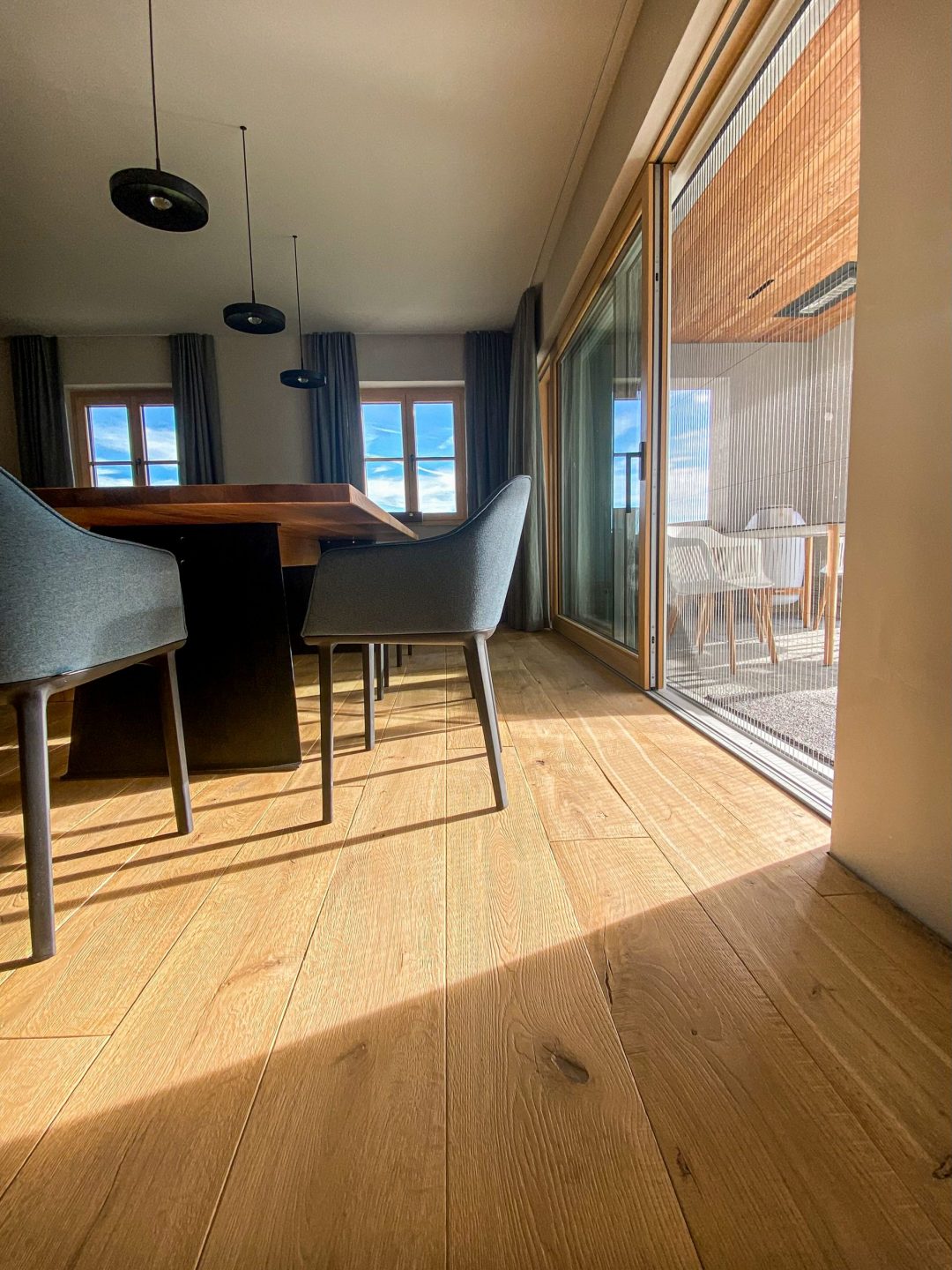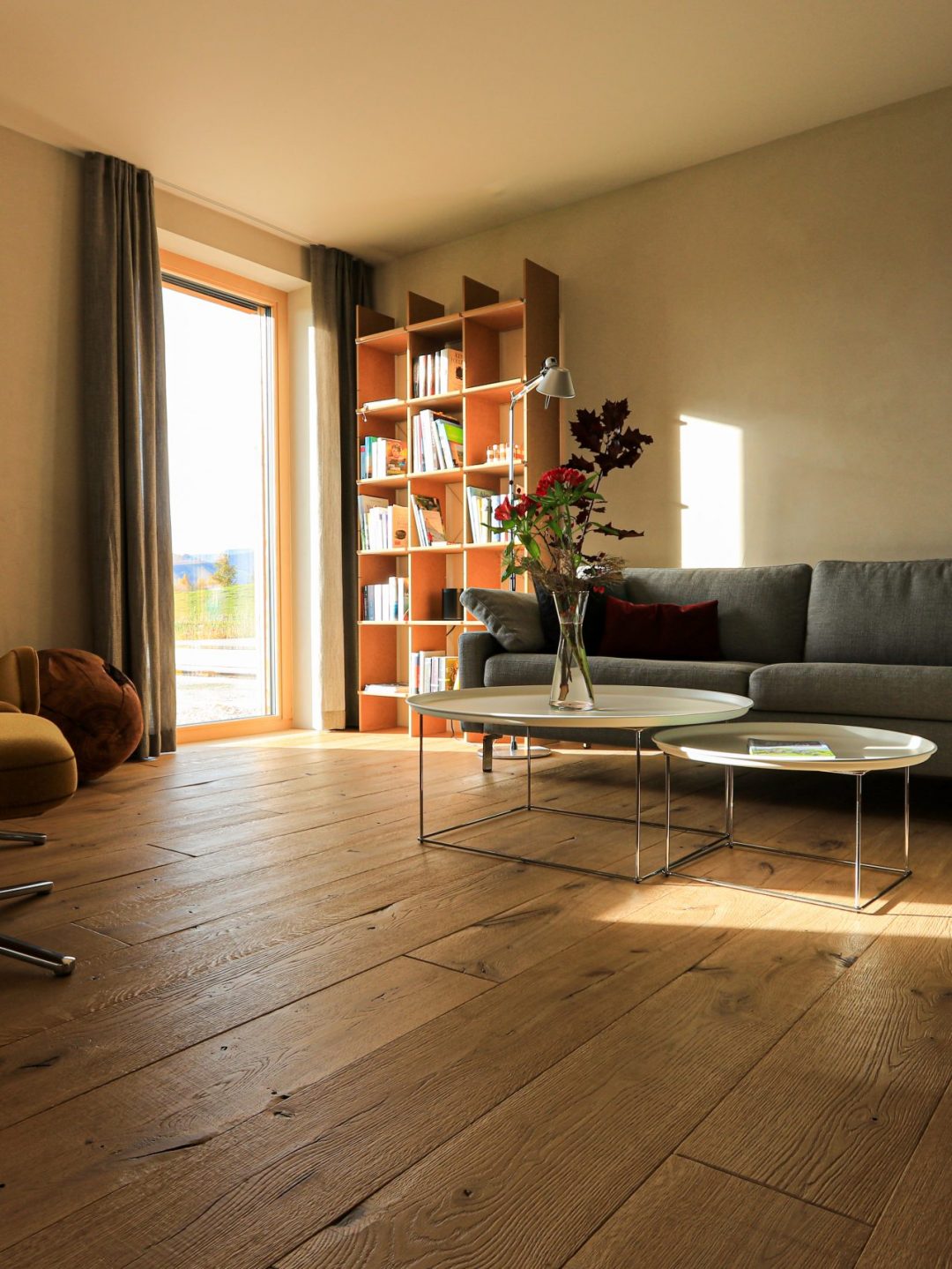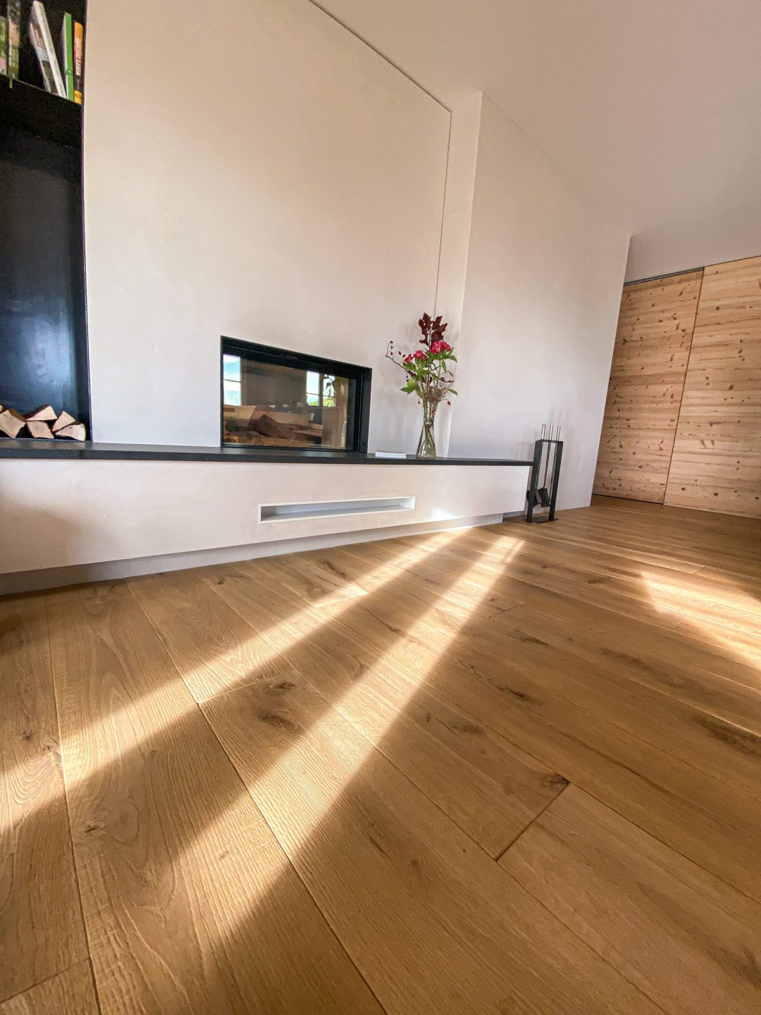 Angenehm gehen wie in der Natur. Die Chalet-Diele ist gekennzeichnet durch die natürlichen Unebenheiten auf der Oberfläche. Ein angenehmer und gesunder Fußschmeichler- Boden für Barfußläufer. Er stimuliert ihre Füße ähnlich wie bei einer Massage oder wie bei barfuß laufen in freier Natur. Ihre Füße und ihr Rücken werden Ihnen dankbar sein. Ein ebenso charakteristisches Merkmal der Chalet-Diele sind auch die nicht gespachtelten, beziehungsweise geschlossenen natürlichen Äste und Risse des Eichenholzes. Der Chalet- Boden geht auch eine überzeugende Symbiose mit top moderner Bauweise und Einrichtung ein. Überzeugen Sie sich gerne selbst beim Probelaufen in unserer Ausstellung zwischen Baden-Baden und Freiburg, oder auf einer Musterfläche bei Ihnen zu Hause, gebracht durch unsere „Rollende Ausstellung“. Die Chalet- Böden stellen wir in vielen Farben für unsere Kunden her.