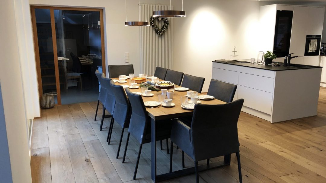 Pleasant as nature intended. The Chalet floor is characterised by the natural unevenness of the surface. A pleasant and healthy experience for those who like to go barefoot. It stimulates the feet similar to a massage or a barefoot walk in the wild. Your feet and back will thank you. An equally characteristic feature of the Chalet floor is the open, non-filled knots and naturally occurring cracks of the oak timber. The Chalet floor also makes for a compelling symbiosis with top modern construction and furnishings. Try it yourself at our showroom between Baden-Baden and Freiburg and be convinced, or with a sample at home brought to you by our rolling exhibition. We produce the Chalet floor in a wide variety of colours for our customers.